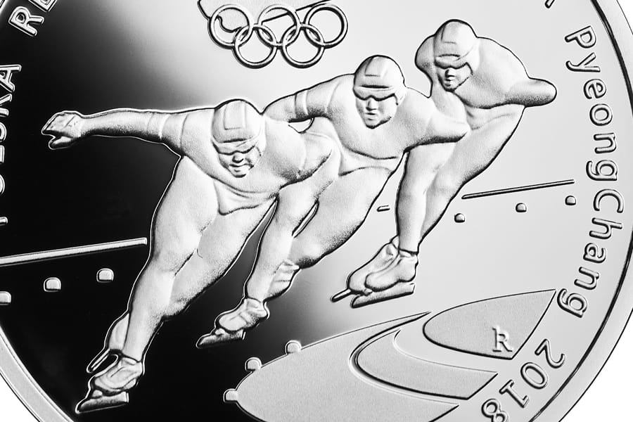 Reprezentanci Polski uczestniczyli we wszystkich zimowych igrzyskach olimpijskich – od Chamonix (1924) po Soczi (2014). Potęgą w sportach zimowych nigdy jednak nie byliśmy – dość przypomnieć, że do roku 1998 nasi reprezentanci zdobyli tylko cztery medale. Potem było już lepiej – z Salt Lake City (2002) i Turynu (2006) przywieźli po dwa, zaś z Vancouver (2010) i Soczi (2014) po sześć olimpijskich krążków. Szczególnie udany był start w Rosji, gdzie biało-czerwoni wywalczyli aż cztery złote medale oraz po jednym srebrnym i brązowym. Po najcenniejsze trofea sięgnęli: Kamil Stoch (zwyciężył dwukrotnie, na obu skoczniach), Zbigniew Bródka (w biegu łyżwiarskim na 1500 m) oraz Justyna Kowalczyk (w biegu narciarskim na 10 km techniką klasyczną). Właśnie do sukcesów sprzed czterech lat nawiązują dwie okolicznościowe monety emitowane przez Narodowy Bank Polski w 2018 roku. Złota moneta przedstawia sylwetkę zawodnika na rozbiegu skoczni olimpijskiej. Obok umieszczono logo Polskiego Komitetu Olimpijskiego, a na obwodzie napis „Polska Reprezentacja Olimpijska PyeongChang 2018”. Na awersie widnieją: godło państwowe, napis „Rzeczpospolita Polska” oraz określenie nominału, w tle zaś płatki śniegu. Na srebrnej monecie oprócz logo PKOl i słów „Polska Reprezentacja Olimpijska PyeongChang 2018” zobaczymy wizerunek drużyny łyżwiarzy szybkich. W Soczi nasze zawodniczki zdobyły srebrny medal, a mężczyźni − brą- zowy. Na drugiej stronie monety umieszczono napis „Rzeczpospolita Polska”, godło pań- stwowe, nominał oraz zarys skoczni olimpijskich w PyeongChang. W XXIII Zimowych Igrzyskach Olimpijskich nasza reprezentacja chciałaby osią- gnąć podobne wyniki jak cztery lata wcześniej. Wszyscy wiemy, że o podobny sukces na pewno nie będzie łatwo. Sport bywa jednak nieprzewidywalny… Polski Komitet Olimpijski